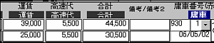 庸車(外注)支払金額を入力する標準タイプ(上段が売上、下段が支払です)